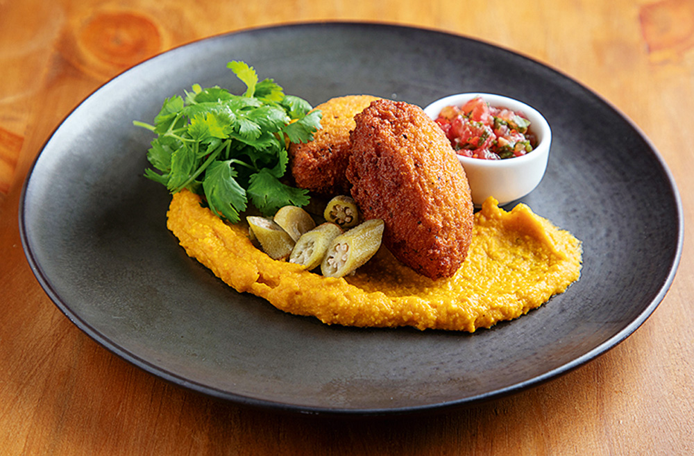 O segmento dos petiscos traz também um pão de queijo diferente (R$ 8,00), preparado com ovo na massa, mais macia e menos elástica, e a dupla de bolinhos de acarajé vegetariano (R$ 43,00), com vatapá de abóbora ardidinho, picles de quiabo e molho picante.